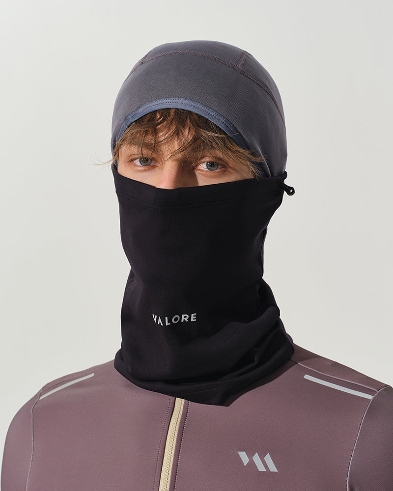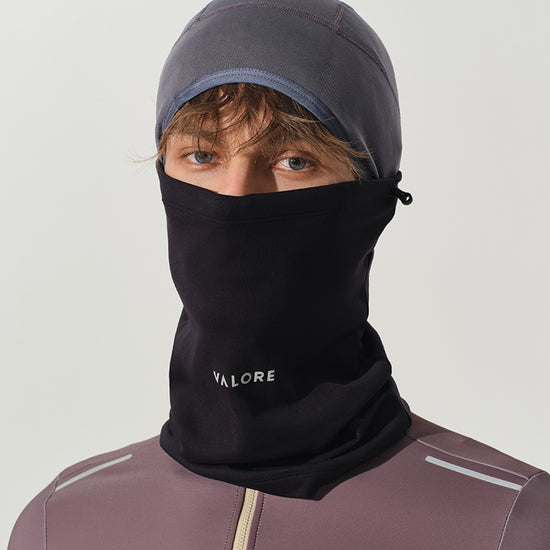 Lightweight warmth for cold, windy rides. Crafted with 16.5μm Australian Merino wool, this dual-layer knit keeps heat in while letting moisture out. An adjustable drawcord lets you seal the neck and face when the weather turns, and a reflective VALORE logo adds low-light visibility.
